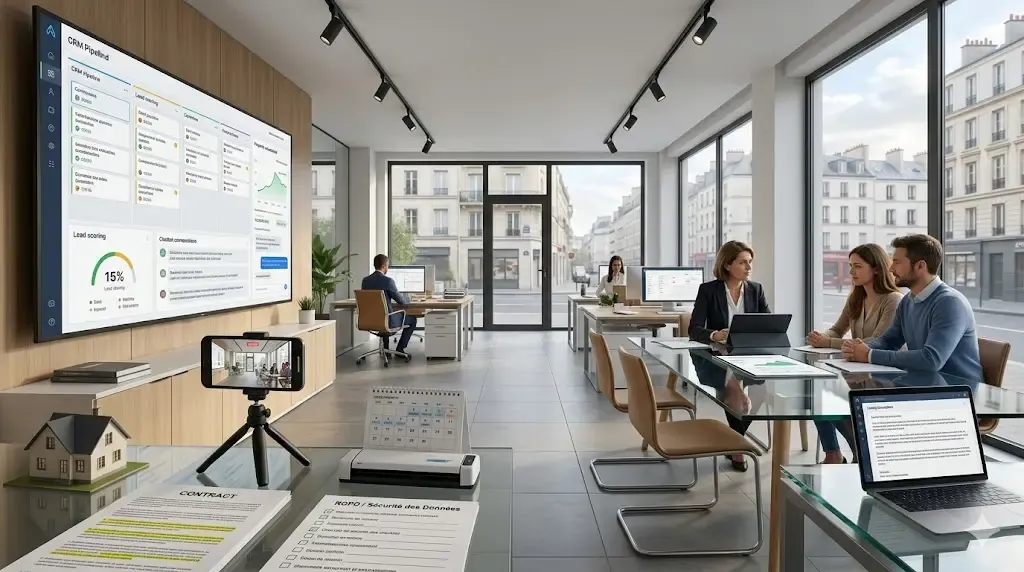 Une agence IA immobilier, c’est simplement une agence qui intègre des outils d’intelligence artificielle dans ses processus quotidiens — de la prise de mandat à la signature, en passant par la relation client et la communication.